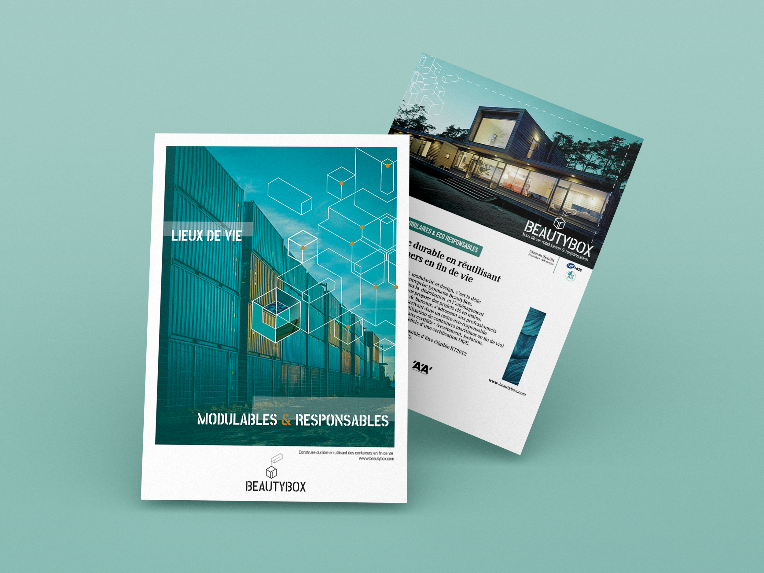 Beautybox est une entreprise basée à Lyon spécialisé dans le recyclage de containers maritimes en lieu de vie modulable pour particulier et professionnel. Le projet s’articule surtout autour de la création graphique de la marque : logo, carte de visite, dépliant, articles de presse et montage photo.